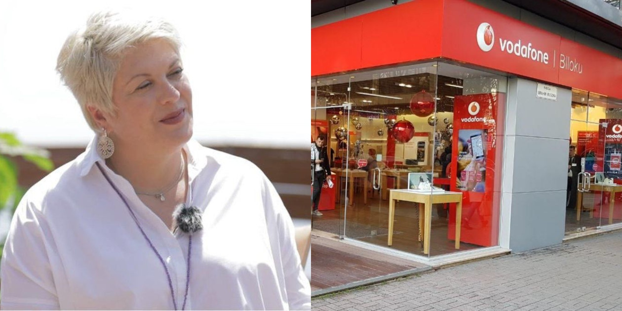 Në foto: Drejtoresha e Vodafona Albania, Katia Spathaki, e një nga dyqanet e Vodafone në Tiranë