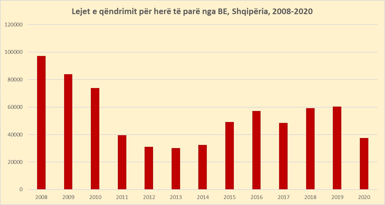 Që nga viti 2008 deri në 2020-n, janë rreth 700 mijë shtetas shqiptarë që kanë marrë leje qëndrimi në një nga shtetet e Bashkimit Europian, sipas Eurostat.
