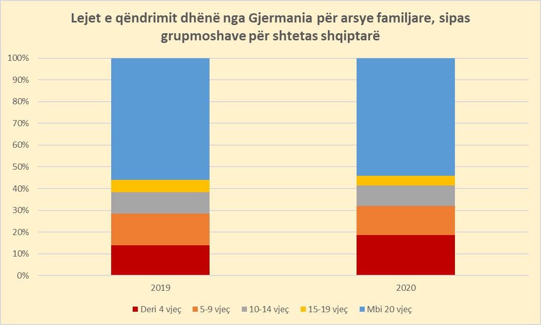 Të dhënat më të detajuara për shtetasit që kanë marrë leje qëndrimi për arsye familjare, tregojnë se në 2019-2020,  po ikin kryesisht si familje, teksa gati 40% e lejeave u dhanë për fëmijët nën 14 vjeç.