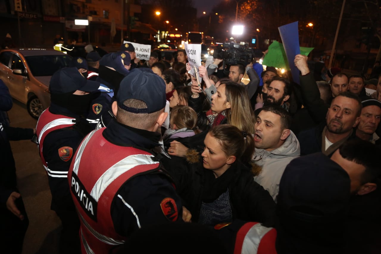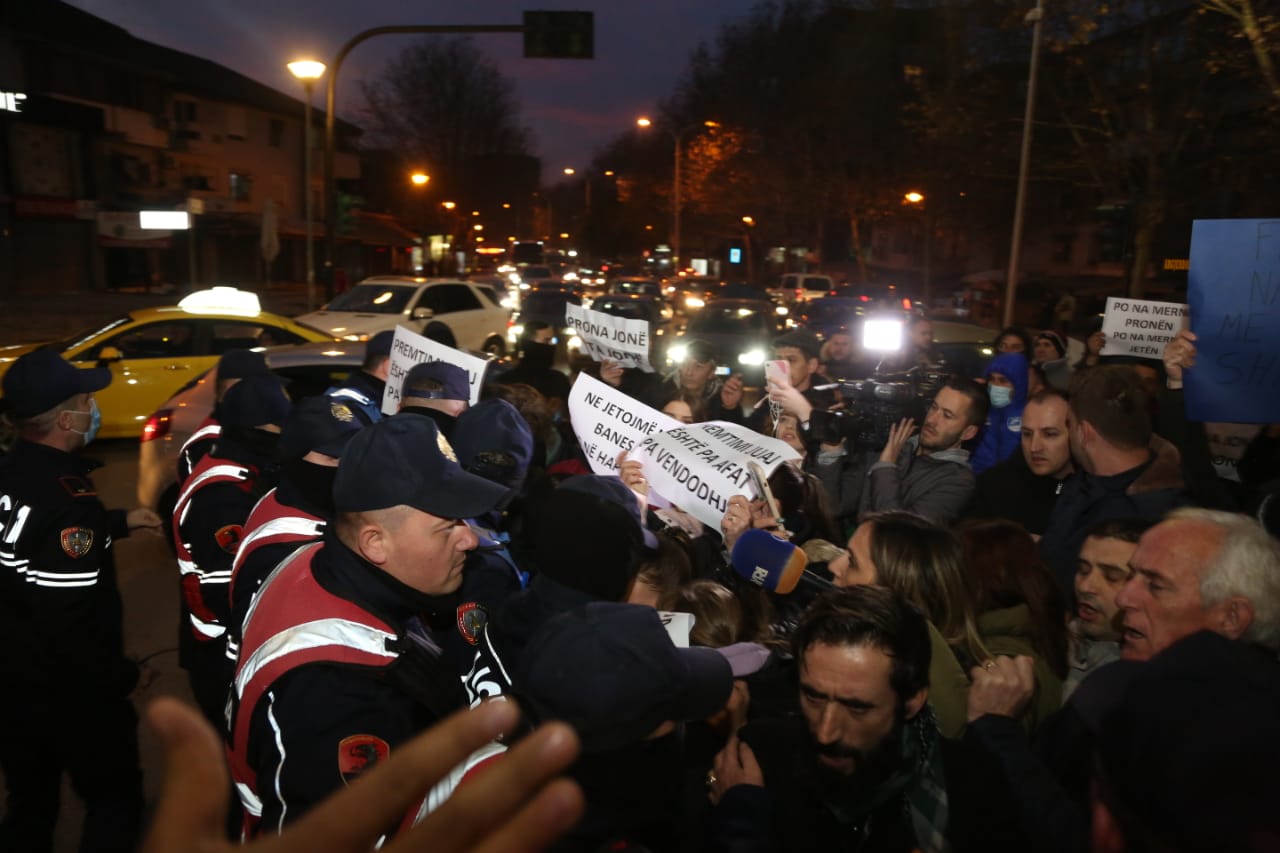 Ka patur pak çaste tensioni, me protestuesit që shprehen: “Policia është me ne”, apo “Ju lutemi policisë mos shtyjnë protestuesit”, si dhe “Hapini rrugën ambulancës”.