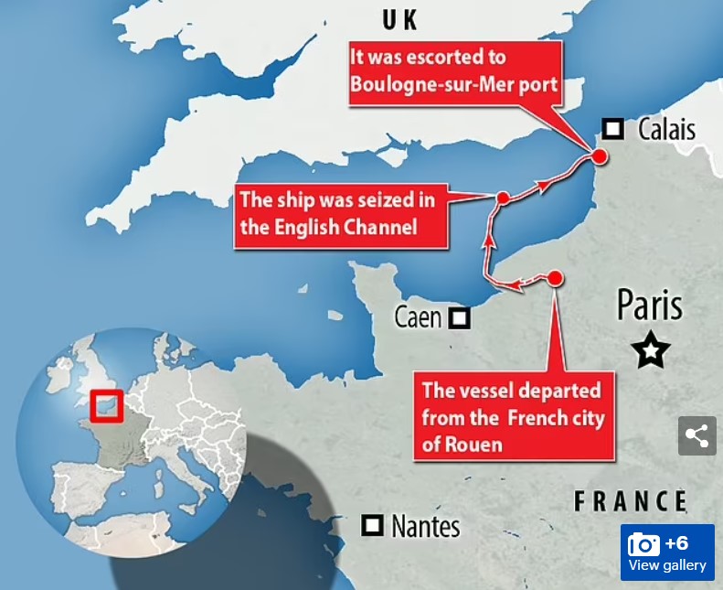 Anija u kap nga zyrtarët doganorë pranë Honfleur, në Normandi, pasi u nis nga qyteti francez i Rouen.