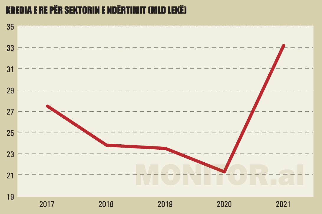 Të dhënat e Anketës Strukturore të Ndërmarrjeve bëjnë të ditur se të ardhurat e të gjithë ndërtimit, pjesa më e madhe e të cilit vjen nga punët publike, ishin 2.2 miliardë euro në vit dhe fitimet, 240 milionë euro. Deri në vitin 2020, rritja e sektorit nuk u mbështet as nga kreditë bankare. Vetëm në 2021, bankat iu rikthyen këtij sektori.