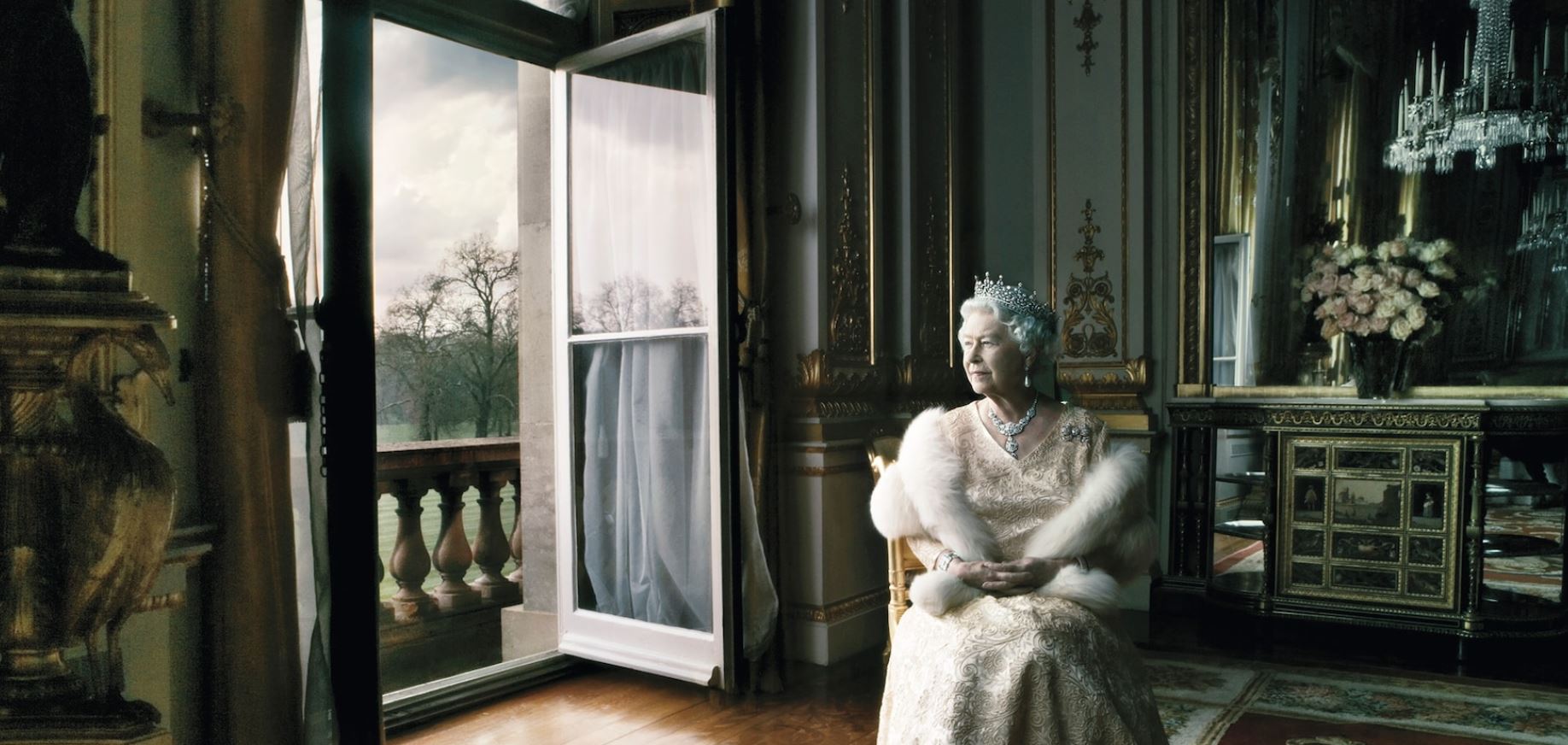 Annie Leibovitz kapi mbretëreshën në dhomën e bardhë të Buckingham Palace në këtë fotografi të vitit 2007.