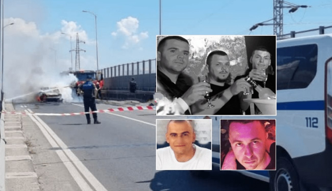 Sipër majtas, vendi i atenatit ndaj Brilant Martinajt e dy shokëve të tij. Djathtas, Besmir Hoxha, Dikler Vata e Brilant Martinaj. Poshte majtas ish-polici Jeton Lami, djathtas Ervis Martinaj
