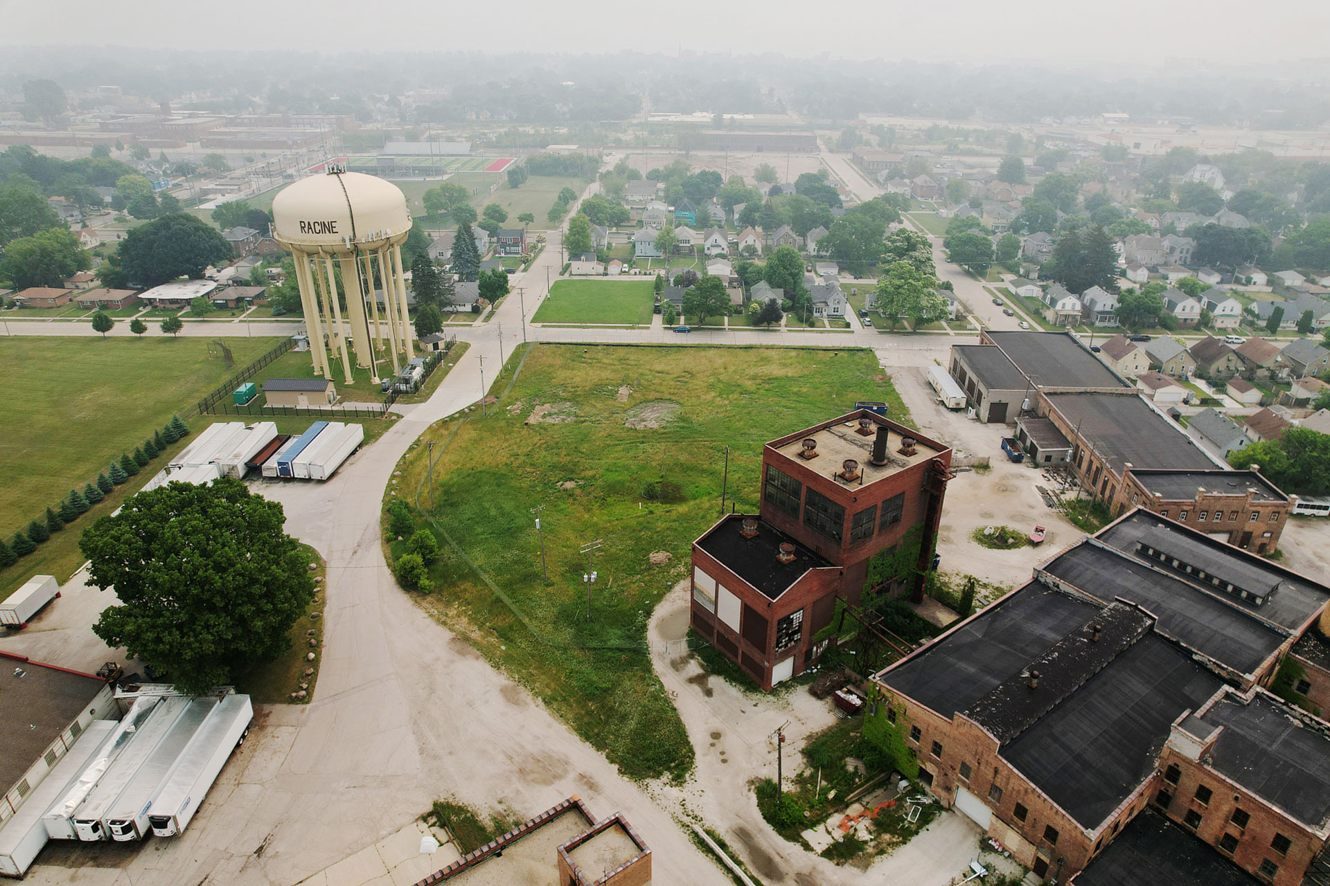 Një kullë uji qëndron mbi Racine