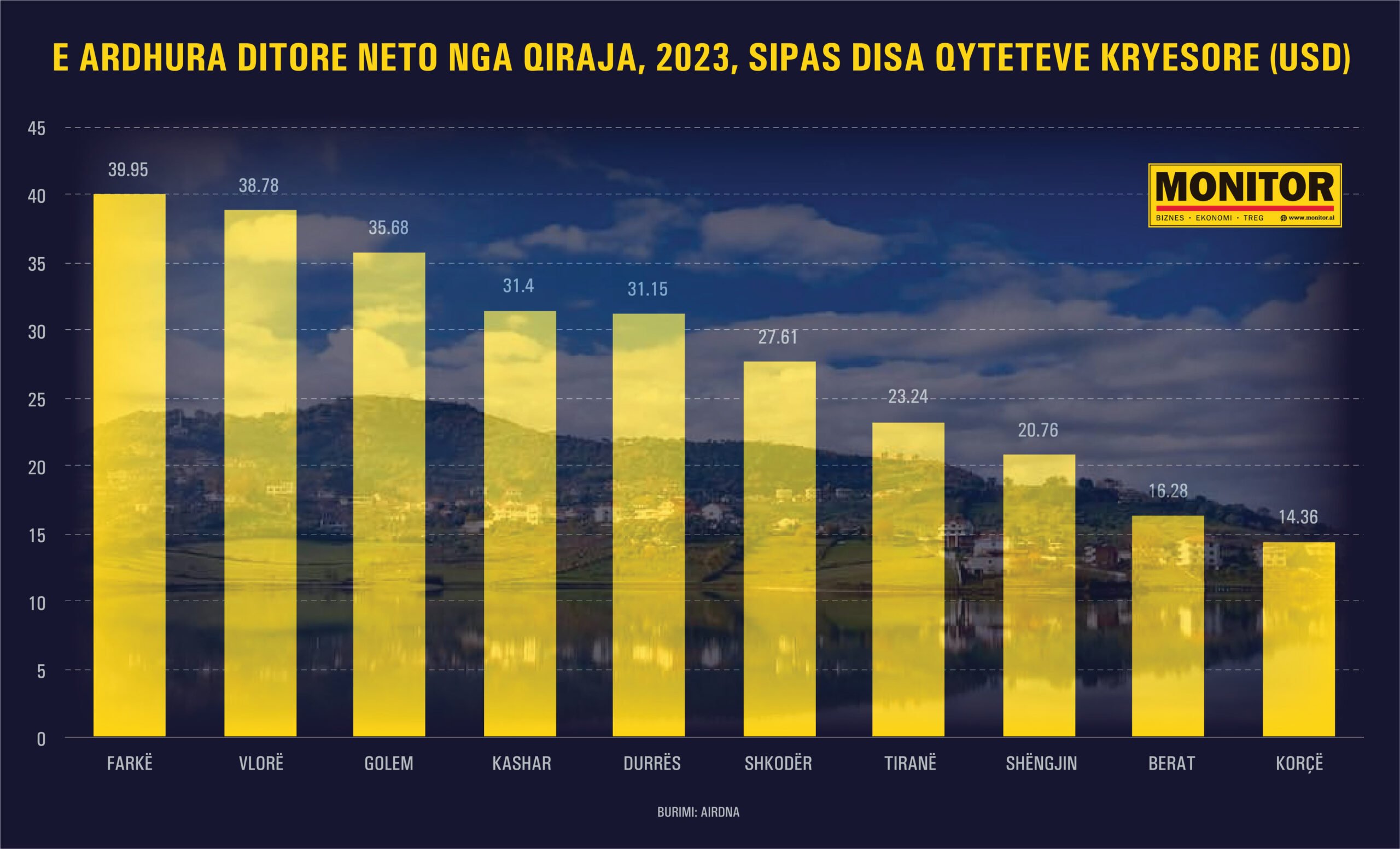 Në Shëngjin, kthimi neto ditor është gati 21 euro, ndërsa më i ulëti është në Berat dhe Korçë, përkatësisht me 16.2 dhe 14.4 euro./ O.Liperi