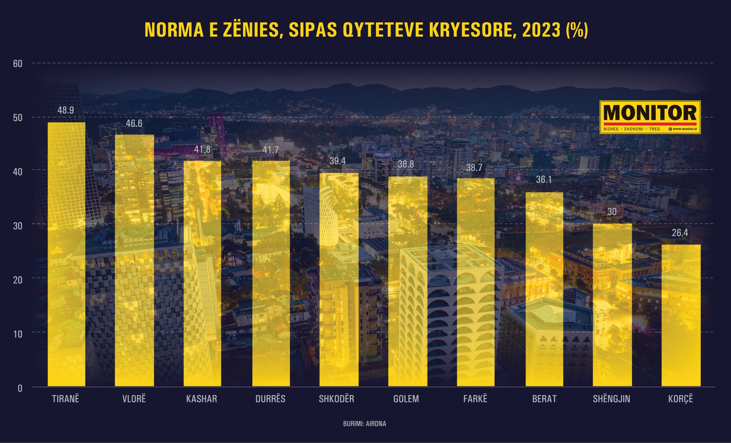 Kryeqyteti kishte normën më të lartë të zënies në 2023, me 49%, që do të thotë që në një muaj, shtëpia është e zënë për gjysmën e periudhës.