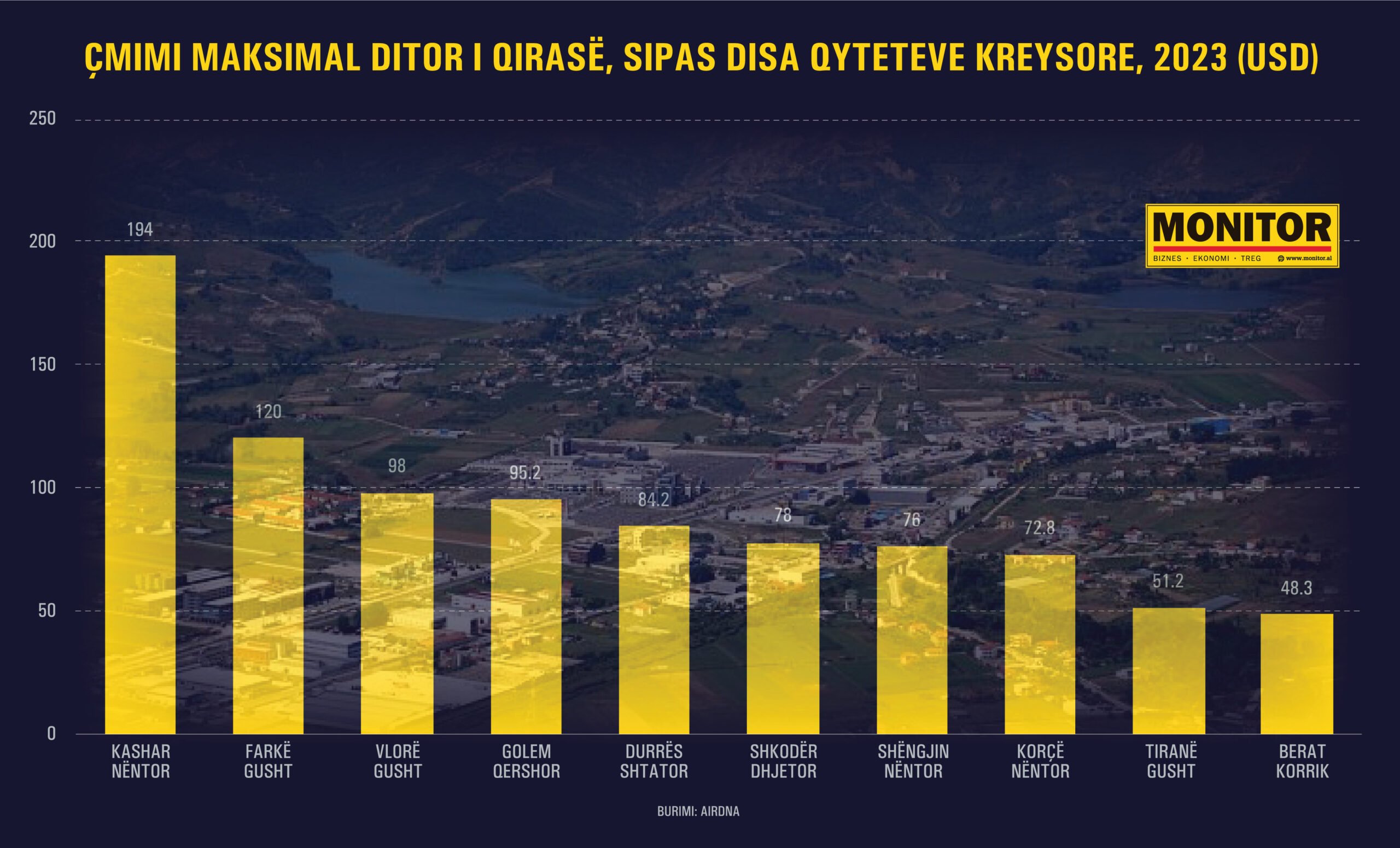 Në Farkë, çmimi maksimal arriti në 120 euro, në muajin gusht.