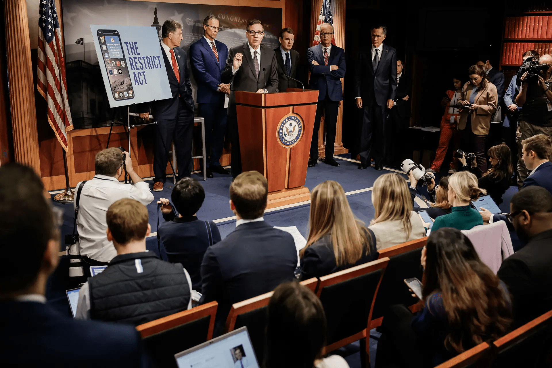 Një grup senatorësh amerikanë prezantojnë një projekt-ligj për të luftuar spiunimin nga Kina në Kapitolin e SHBA më 7 mars 2023