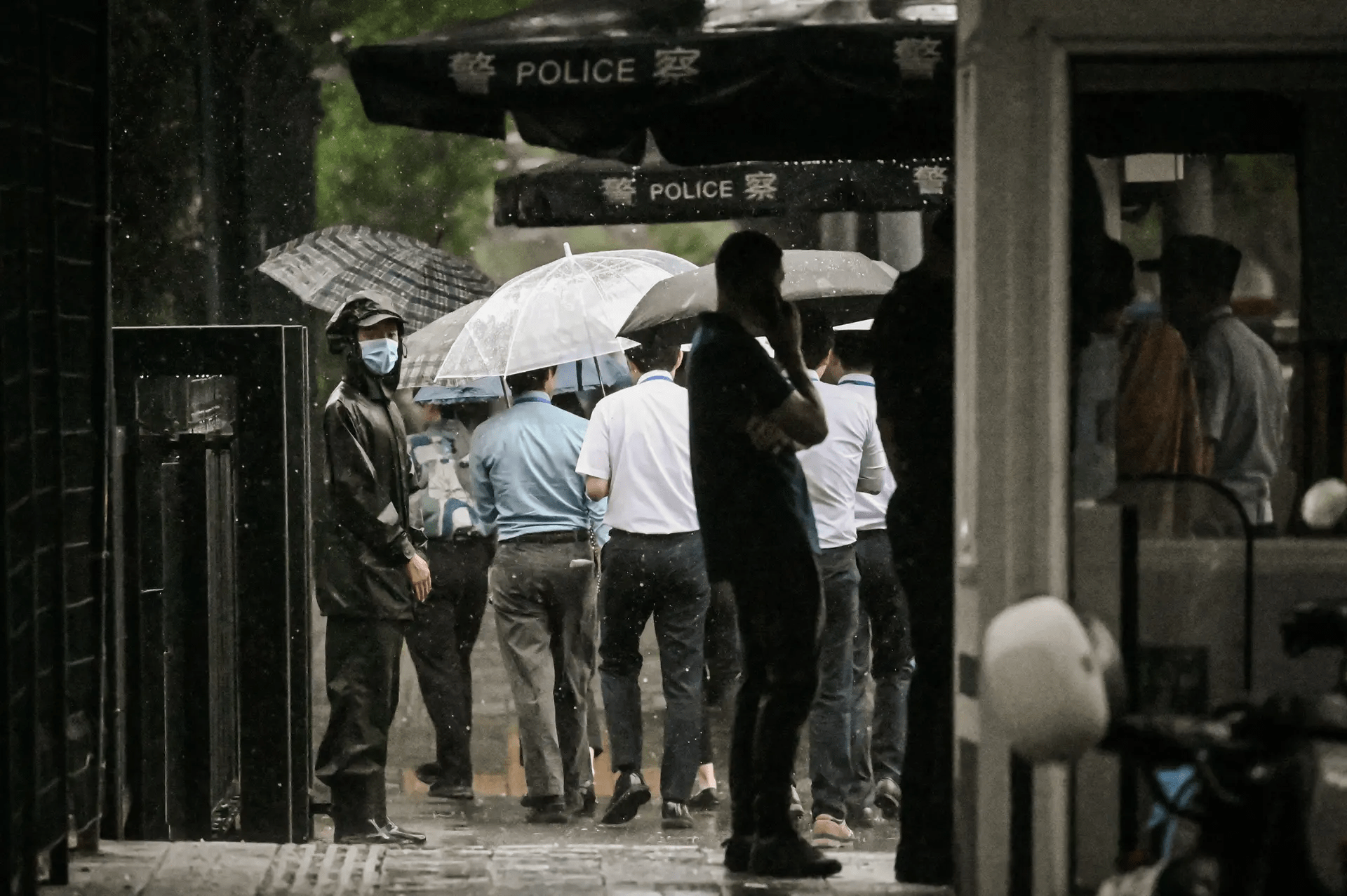 Policia kineze dhe stafi i sigurisë shikojnë ndërsa anëtarët e stafit hyjnë në ambasadën japoneze në Pekin më 24 gusht 2023