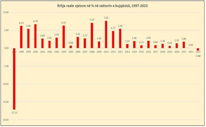 Struktura e rritjes ekonomike në vitin 2023 tregoi rënie të theksuar të sektorit të prodhimit në vend dhe sidomos bujqësisë, që është edhe sektori më i madh në ekonomi.