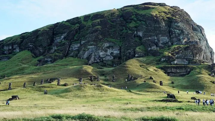 Moais shihet në shpatet e jashtme të kraterit vullkanik Rano Raraku