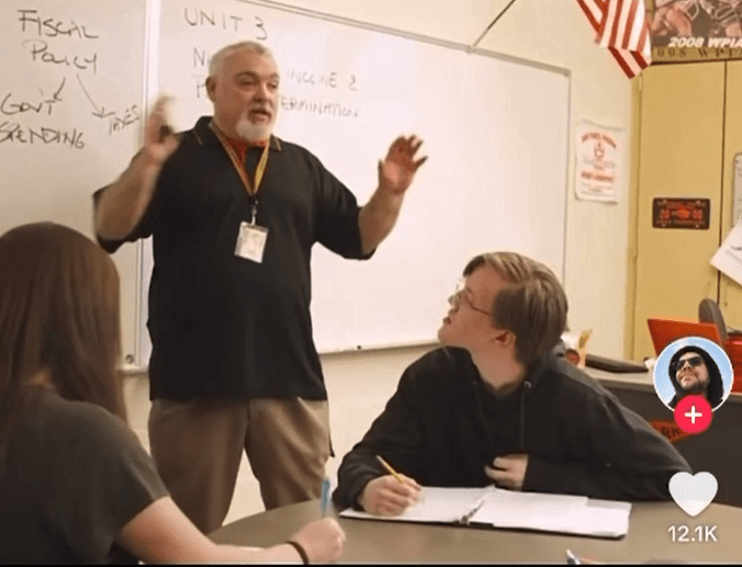 Reklama 30 sekondëshe e BlackRock TV paraqet një klasë AP dhe ‘Honors Economics’ që Crooks ndoqi në atë kohë, duke folur me mësuesin e tij.