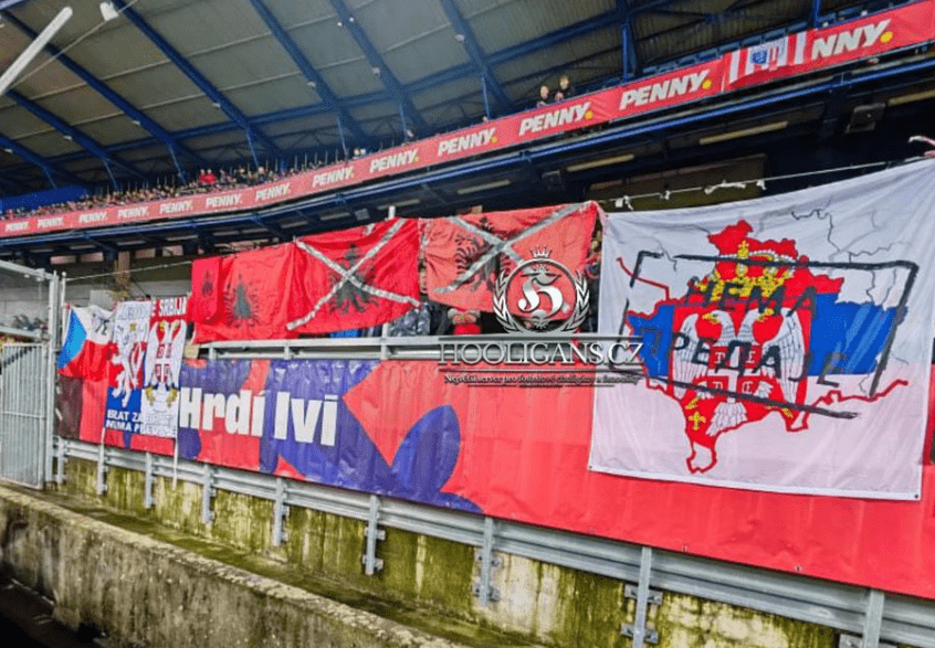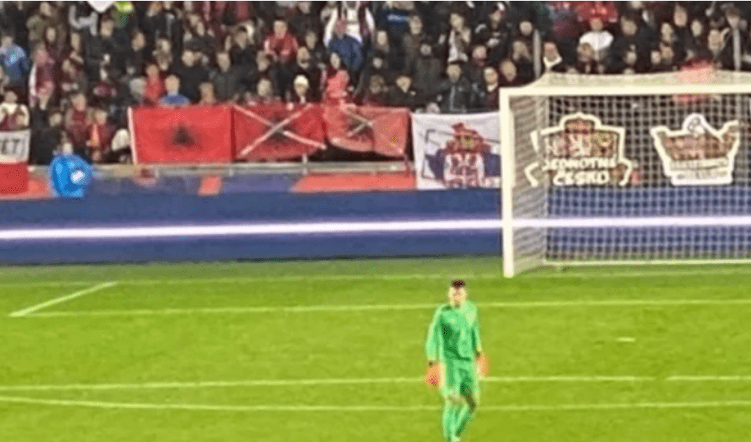 Disa flamuj shqiptarë të kthyer përmbys janë shfaqur nga tifozët e Çekisë në ndeshjen në Pragë. Madje dy prej tyre janë mbuluar me “X”.