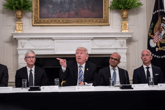 Tubimi i korrikut në Butler, Pensilvani, ku Trump u plagos në një atentat, duket se ka qenë një pikë kthese. Disa shefa u kontaktuan pas të shtënave, duke përfshirë Elon Musk të Tesla dhe X, Tim Cook të Apple, Mark Zuckerberg të Meta, Andy Jassy të Amazon dhe Sundar Pichai të Google, sipas një këshilltari të Trump.