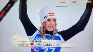 Për herë të parë në historinë e saj, Lara Colturi arrin të ngjitet në podiumin e një etape të Kupës së Botës në ski, duke u renditur e dyta pas kampiones botërore Mikaela Shiffrin. Ky rezultat historik shënon një arritje të jashtëzakonshme jo vetëm për Colturi, por edhe për Shqipërinë, e cila për herë të parë përfaqësohet mes më të mirëve në botë në këtë sport.