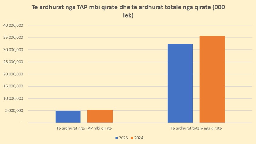 Shuma e të ardhurave nga TAP prej 5,3 miliardë lekësh është 15% e vlerës 35,6 mld lekë. Sipas krahasimit të të dhënat, tregu i qiradhënies kishte një vlerë zyrtare prej 350 milionë eurosh në të gjithë vendin, nga rreth 320 milionë euro që ishte në vitin 2023.