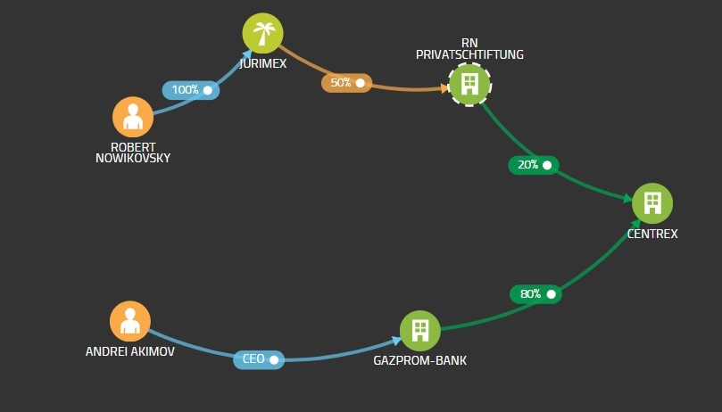 Janë disa kompani në pronësi, në përqindje të ndryshme të zotit Robert Nowikovsky, (si psh. Centrex Group, Jurimex Commerce Transit GMBH, CEEGAG, GHGAS, ZAOAB etj), të cilat shërbejnë si urë për marrjen e koncensioneve të ndryshme, në krijimin e shoqërive të caktuara dhe pastaj për blerjen 100% të këtyre aksioneve nga GAZPROM.