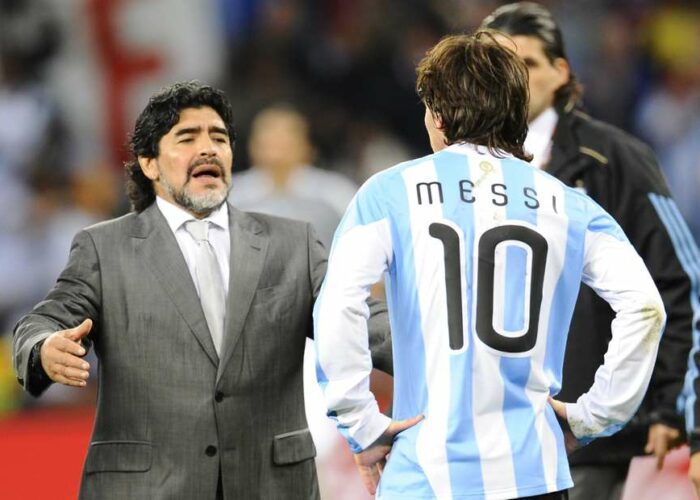 “Bashkë me Cristiano Ronaldon, janë dy lojtarët më të mirë në botë, por nuk ka kuptim që të bësh liderin e një ekipi, një lojtar që para se të fillojë ndeshja shkon 20 herë në tualet. Ai më mirë luan playstation sesa flet me shokët e ekipit në stol.” – ka thënë Maradona.