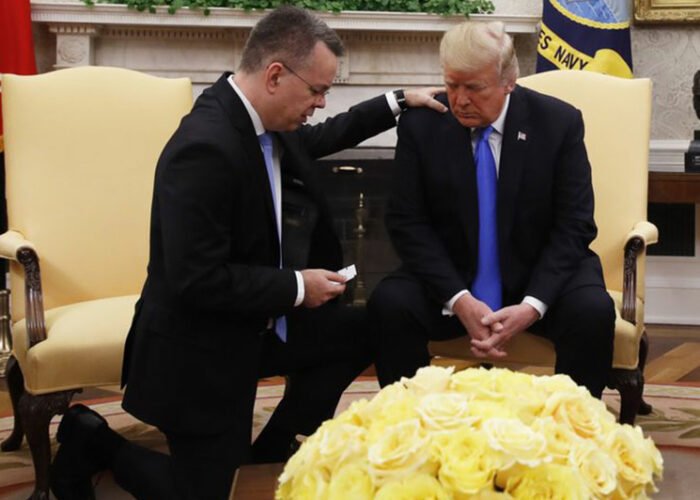 Trump e mirëpriti Brunsonin në Shtëpinë e Bardhë për të festuar lirimin e tij pas afro dy vitesh burgosjeje në Turqi, gjë që shkaktoi edhe një mosmarrëveshje diplomatike me një aleat kyç e për më tepër edhe irritim nga grupet ungjillore amerikane.