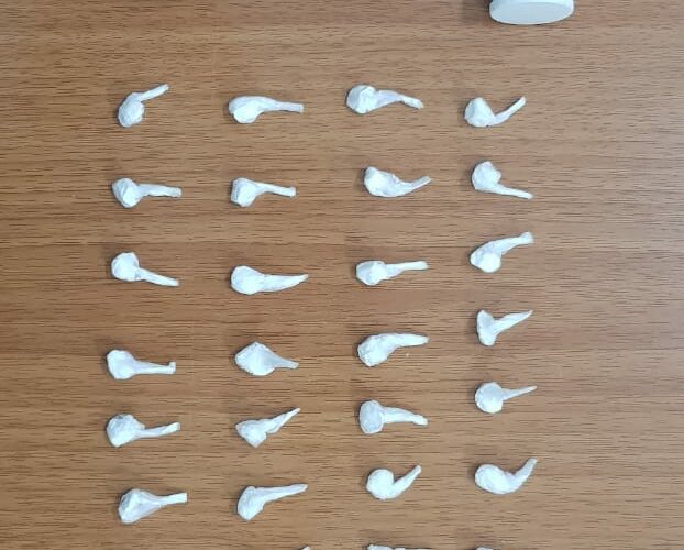 • 30 (tridhjetë) doza të dyshuara si ajo e lëndës narkotike e llojit “Kokainë”