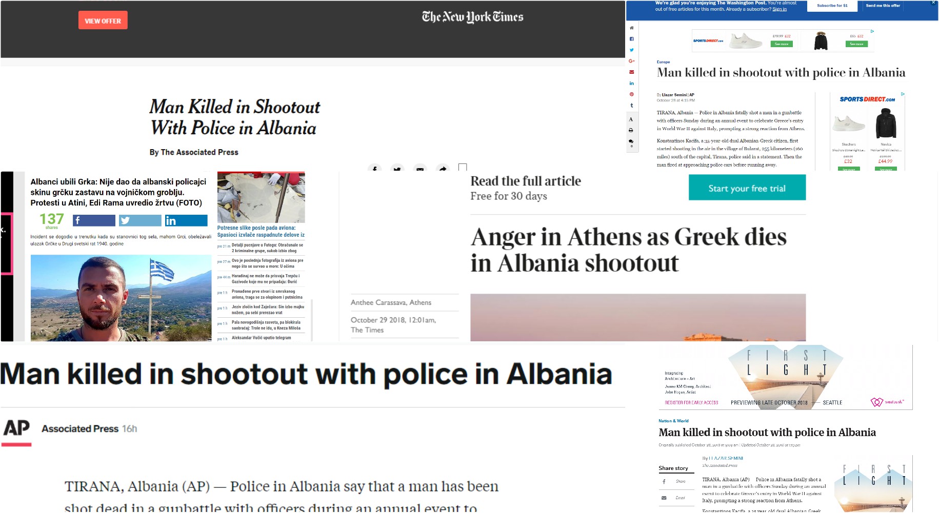 Mediat ndërkombëtare e kanë pasqyruar gjerësisht vrasjen e minoritarit grek, Kostandinos Kacifas, pas një shkëmbimi zjarri me policinë shqiptare në fshatin Bularat të Gjirokastrës.