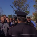 Me pankarta në duar ata thërrasin: “Bëjini mirë llogaritë. Hajdutë, kriminelë. Të gjithë këta njerëz nuk i shkel dot ai. Turp, turp. Poshtë hajdutët.”