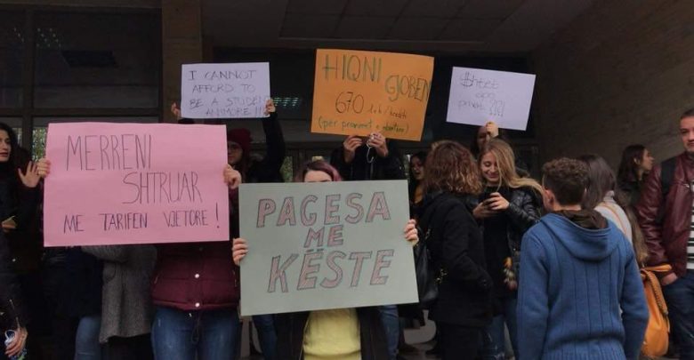 “Studentet e Fakultetit te Inxhinierise se Ndertimit & Arkitektures dhe Urbanistikes ne proteste kunder rritjes se tarifave nga shteti. Sikur mos mjaftoje tarifa aktuale vjetore, tashme studentet duhet te paguajne minimalisht 60.000 leke te vjetra per cdo provim te mbartur. Praktikisht ata duhet te paguajne dy here per te njejtin provim.”, shkruan Këllici.