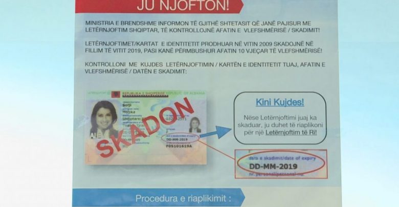 Për të gjithë ata që iu ka skaduar karta e identitetit zyrat e aplikimit do të jenë të hapura edhe këtë të shtunë në Tiranë. Drejtoria e Përgjithshme e Gjendjes Civile, deklaron se për shkak të fluksit të aplikimeve për karta ID, ka urdhëruar hapjen e gjithë zyrave të aplikimit për Tiranën edhe ditën e shtunë, datë 12 Janar 2019.