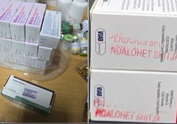 Makineria e zgjeron murin prej hekuri duke strehuar punonjësit e policisë pas saj.