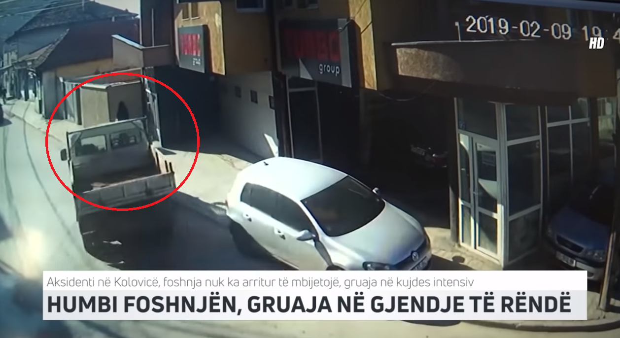 Aksidenti i frikshëm është filmuar nga një kamera sigurie, që tregon momentet se si kamionçina përplas gruan që ishte shtatzënë. Drejtuesi i kamionçinës është arrestuar dhe ndodhet në ambientet e paraburgimit.