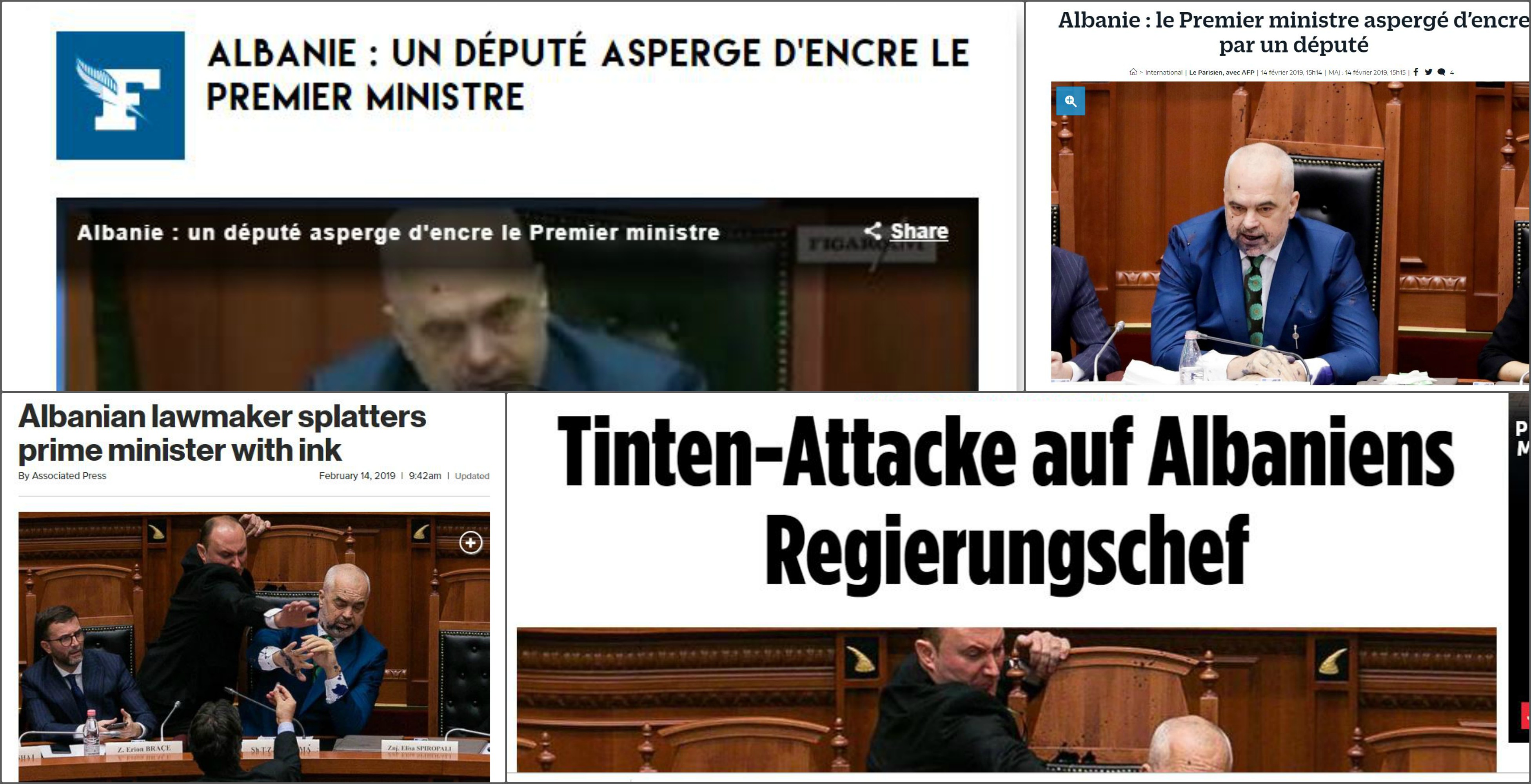 Përlyerja e Ramës me bojë ka arritur në mediat ndërkombëtare kryesore, si “Associated Press”, “Washington Post”, “New York Post”, “Fox News“, “Le Parisien”, “Le Figaro”, “Prothothema”, “Bild”, “Xinhuanet”, etj.