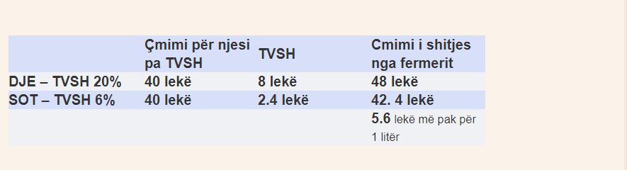 Tabela më poshtë ilustron rastin e çmimit të shitjes së i litri qumësht.