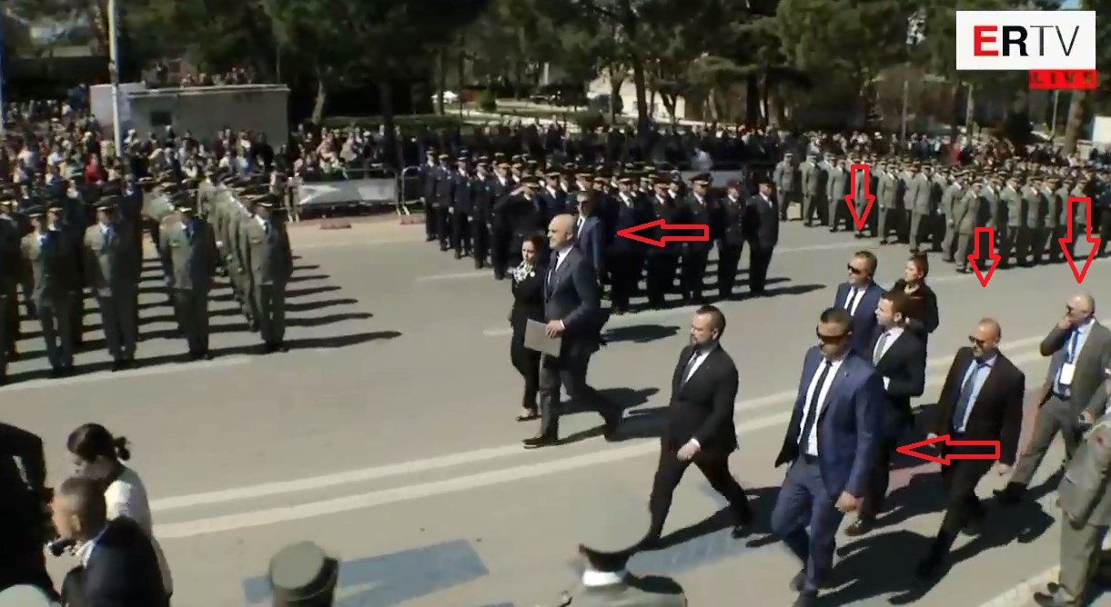 Kryeministrin Rama e shoqëronin gjatë kësaj ceremonie edhe 6 truproja në një vend ku kishte edhe prezencë të ushtrisë.