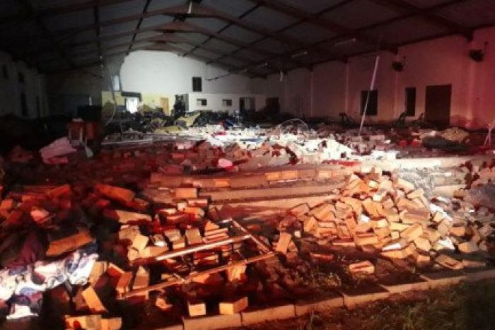 Sipas shërbimeve të emergjencës, kisha që ndodhej në krahinën lindore bregdetare të KwaZulu-Natal, u rrëzua për shkak të shirave dhe erërave të forta.