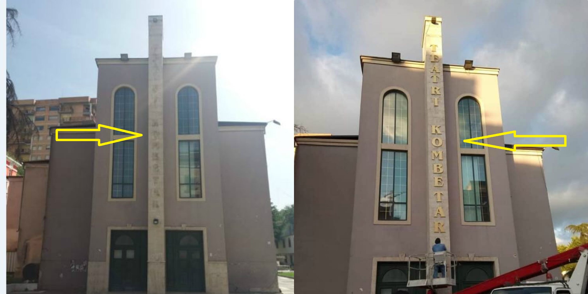 Më tej nën brohoritjet dhe ngazëllimin e qindra qytetarëve dhe artistëve që ndodheshin në sheshin para teatrit, shkrimtari dhe aktivisti Rudi Erebara rivendosi gërmat e arta të Teatrit Kombëtar.