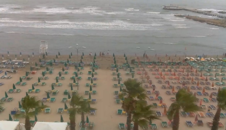 Në plazhin e Velipojës, pushuesit janë detyruar të tërhiqen disa metra larg vijës bregdetare për shkak të dallgëve të forta që kanë përparuar me shpejtësi duke marrë përpara shezlonget dhe çadrat.