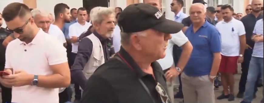 Qytetarë të shumtë janë mbledhur para godinës së bashkisë për të protestuar në mënyrë paqësore.