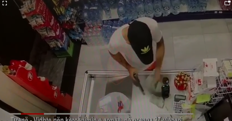 I riu me inicialet E.B, është kapur dhe nga kamerat e sigurisë duke kërcënuar shitësit dhe duke u marrë paratë në një market në rrugën “Naim Frashëri” dhe në një pikë rimbushje telefonike në rrugën e Durrësit.