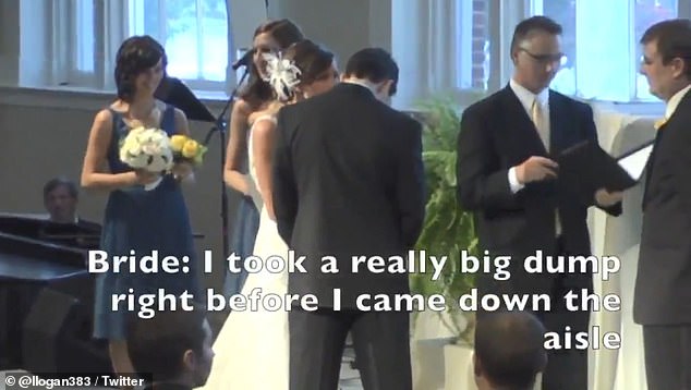 Në video dëgjohet dhëndri teksa i thotë nuses se dukej e mrekullueshme, ndërsa ajo i përgjigjet me fjalët: Sapo isha në tualet dhe u shkarkova mirë. E mbusha mirë.