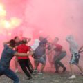 Tifozeritë e të dyja skuadrave u përplasën dje me njëra-tjetrën në pjesën pas porte. Është dashur ndërhyrja e forcave të sigurisë për të shmangur përplasjen.