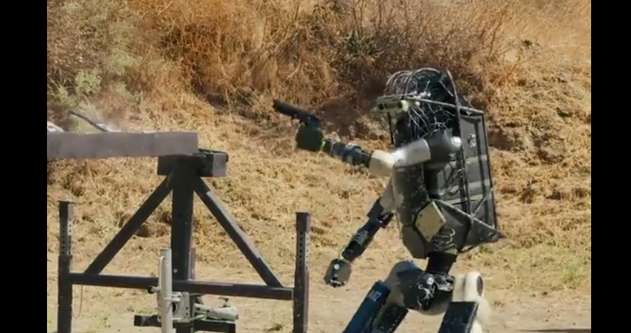 Ai arrin të qëllojë me armë, të ngrihet pasi e rrëzojnë. Këta robotë stërviten që të zëvendësojnë njerëzit në luftë në të ardhmen.