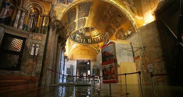 Uji depërtoi gjithashtu në Katedralen e Shën Markut. Kjo është hera e gjashtë në historinë gati mijëravjeçare të Bazilikës së Shën Markut që uji u fut në bazilikë. Katedralja është përmbytur katër herë në 20 vitet e fundit, më së fundmi në tetorin e një viti më parë.