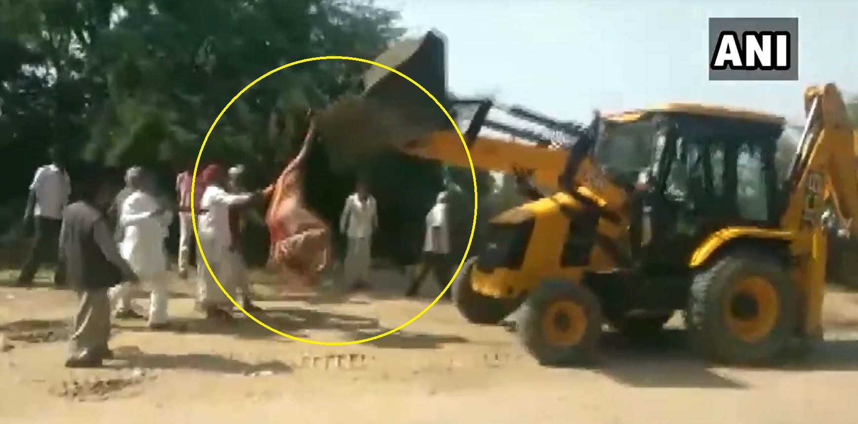 Gruaja e guximshme mund të shihet duke i bërtitur shoferit të eskavatorit ndërsa qëndron në tokën e saj. Mjeti i afrohet aq shumë saqë ajo kapet në pjesën e përparme të koshit, gjë që mund t’i kishte kushtuar jetën. Turma e mbledhur bërtet për t’i dhënë fund incidentit.