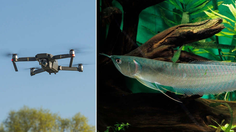 Një peshk arowana u filmua duke bërë hedhje të guximshme sipas sipërfaqes së ujit për të kapur një dron të cilin e mendonte si një pre të lehtë. Peshku në fjalë zakonisht ushqehet me zogj dhe insekte.