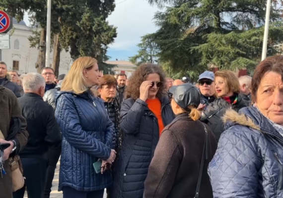 Ai etiketoi me emra të përveçëm disa prej gazetarëve që protestojnë para parlamentit.