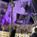 Gazetarja po raportonte gjatë procesit të shpëtimit të një personi në një ndërtesë të rrëzuar në Mustafapaşa.