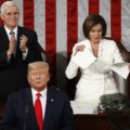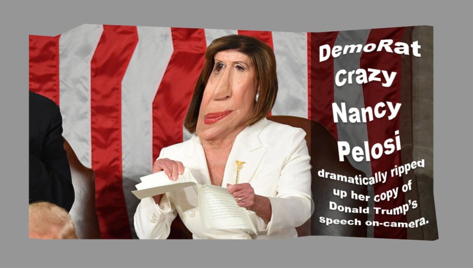 Që kur Trump e injoroi duke mos i shtrënguar dorën kur ajo ia ofroi, Pelosi qëndroi e vrenjtur gjatë gjithë fjalimit të presidentit, lëpinte buzët, tundte kokën e bënte gjeste të çuditshme, derisa në fund i grisi atij dhe fjalimin.