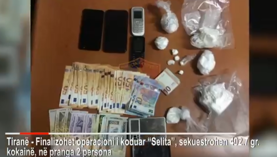 “Mbi bazën e këtyre informacioneve, nga ana e punonjësve të policisë të Sektorit të Forcës së Posaçme “Shigjetat” të DVP Tiranë, në bashkëpunim me Seksioni për Hetimin e Narkotikëve, në rrugën “Prokop Mima”, është ndaluar për kontroll automjeti tip “Smart”, me drejtues L. T. dhe pasagjer V. T. Gjatë kontrollit fizik dhe në banesën e shtetasit L. T, Policia gjeti dhe sekuestroi në cilësinë e provës materiale 402.7 gramë lëndë narkotike, e dyshuar kokainë, një pjesë e së cilës ishte ndarë në doza gati për shitje, një peshore elektronike, 5 aparate celular dhe një sasi parash të dyshuara të përfituara nga shitja e lëndës narkotike”-thuhet në njoftimin e policisë.