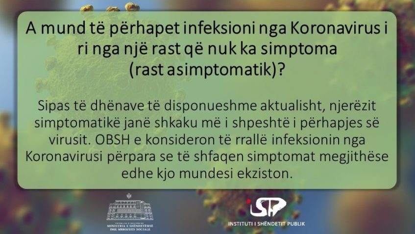 A mund të përhapet infeksioni nga Koronavirusi i ri nga një rast që nuk ka simptoma (rast asimptomatik)?